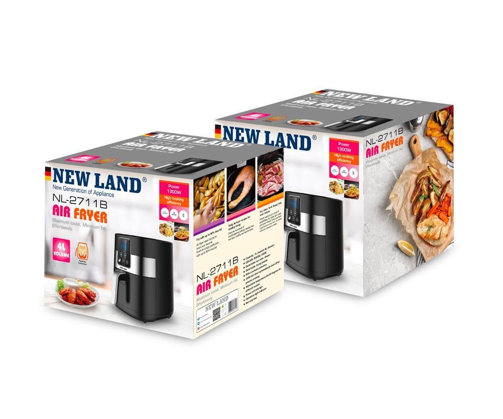 سرخ کن نیولند Air Fryer) مدل: (NL-2711B) توان: 1300 وات سایز: 4 لیتر چرخش سریع هوا کشوی نچسب جدا شدنی سبد سرخ کردنی جداشدنی دارای محافظت در برابر گرمای بیش از حد دارای تایمر 30/60 دقیقه که به طور خودکار در هنگام پخت و پز خاموش میشود دمای قابل تنظیم بین 200-80 درجه برای دستور العمل های مختلف دارای نشانگر چراغ عملکرد دارای پایه های بدون لغزش نمایشگر لمسی بدون روغن با عملکرد آسان راندمان پخت بالا.