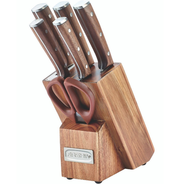 سرویس چاقو آشپزخانه عرشیا مدل KS118-3190 با دسته چوبی، شامل 5 عدد چاقو و یک قیچی است که در یک پایه نگهدارنده چوبی قرار میگیرند. تیغههای چاقوها از فولاد ضد زنگ ساخته شدهاند و دسته آنها نیز از چوب است پایه نگهدارنده این سرویس از جنس چوب است و علاوه بر نظم دادن به چاقوها، به عنوان یک عنصر دکوراتیو نیز در آشپزخانه عمل میکند در باسلام.