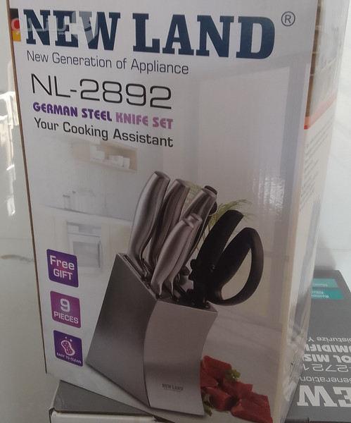 سرویس چاقوی آشپزخانه 9 پارچه تمام استیل نیولند مدل NL-2892 شامل یک قیچی حرفهای، پوستکن، ساطور، چاقو تیزکن و 4 عدد چاقو در سایزهای مختلف است. جنس تیغهها از استیل ضد زنگ بوده و ساخت کشور چین است