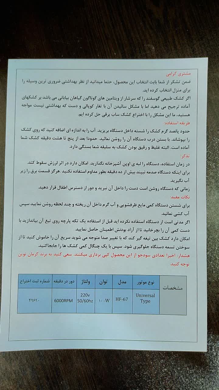 ابعاد: ارتفاع کلی کشک ساب با احتساب موتور: 32 سانت عرض دهنه:18 سانت ارتفاع داخلی مخزن کشک ساب:16 سانت