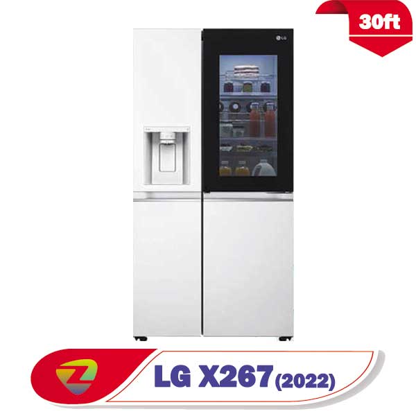 یخچال فریزر ال جی X267 ظرفیت 30 فوت مدل یخچال: GR-X267CQES. کشور سازنده: کره رنگ: سفید، نقرهای نوع درب: InstaView. ظرفیت به لیتر: 617 لیتر ظرفیت به فوت: 30 فوت کمپرسور: اینورتر خطی